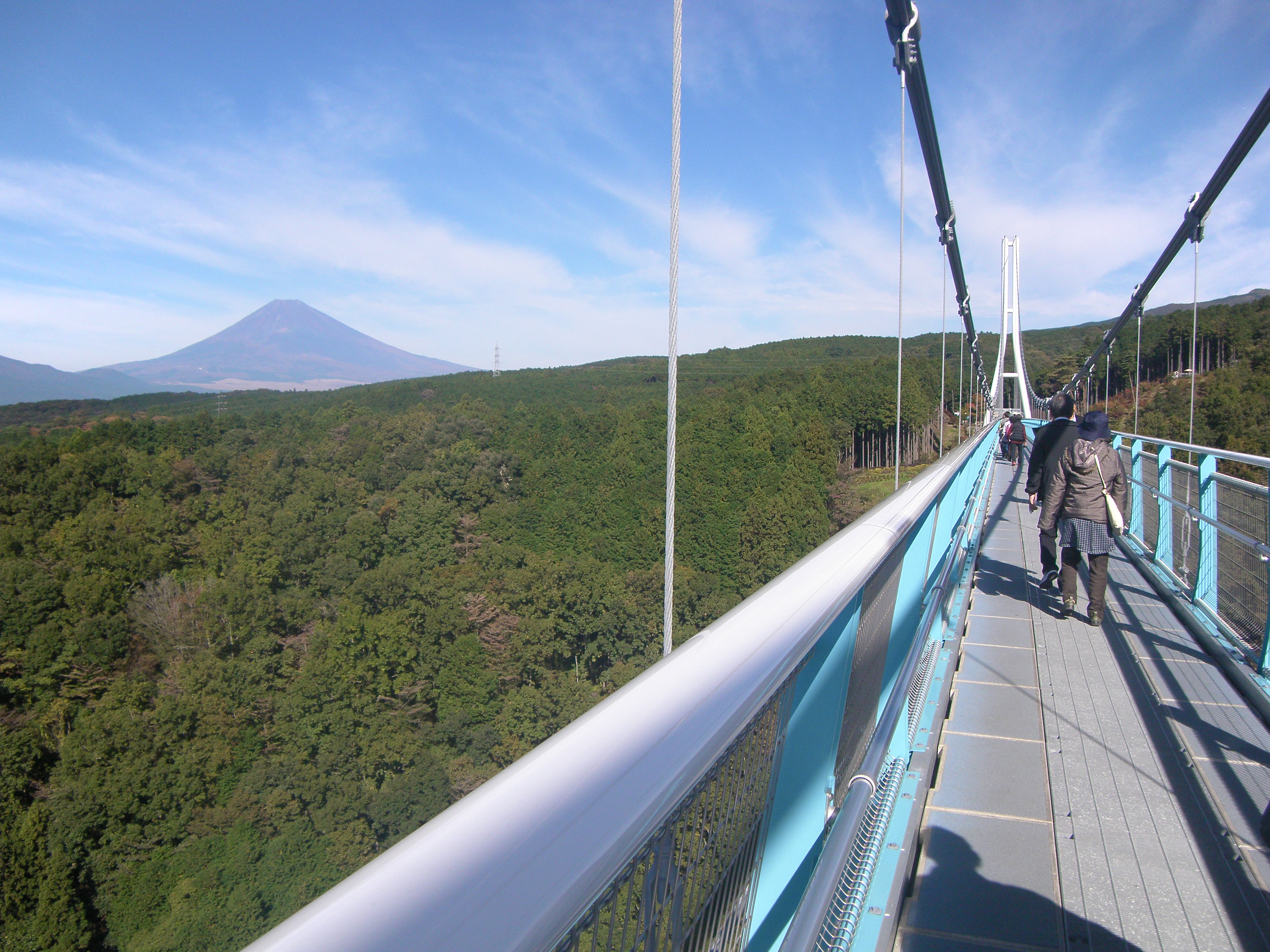 〇2日木曜日も朝から気持ちの良い靑空のなか、日本最長の大吊り橋「三島スカイウォーク」から絶景富士を堪能しました。また、富士の雪解け水がコンコンと湧き出ている柿田川湧水群などを、ボランティアガイドの案内で公園内を散策しました。